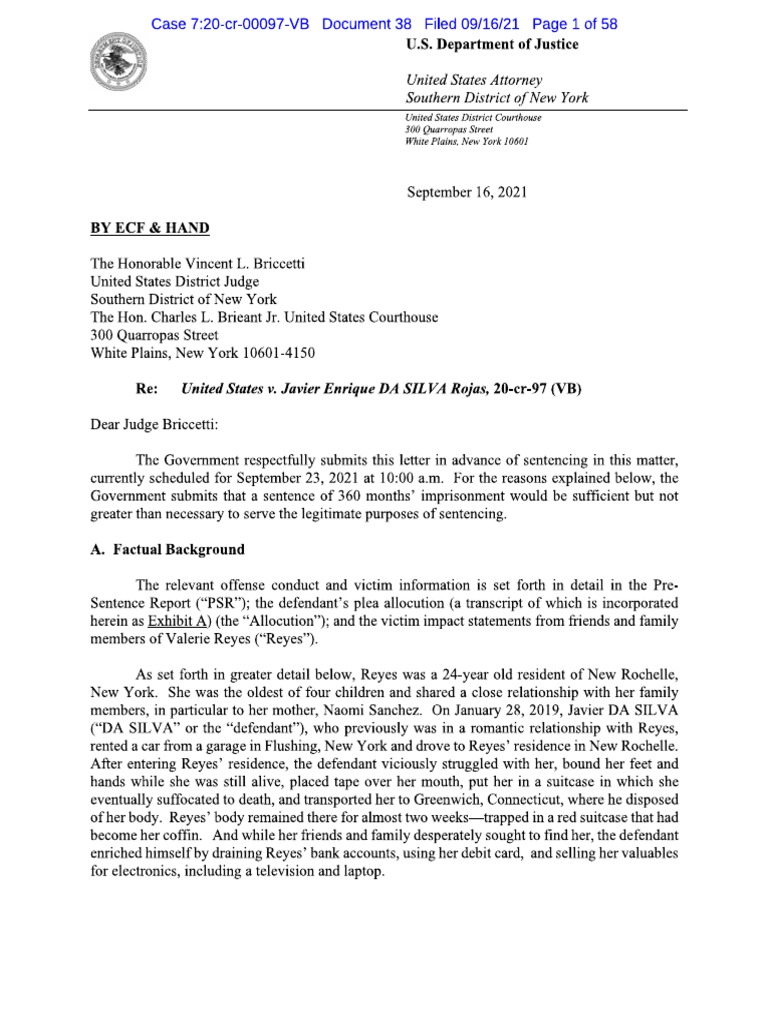 | Da Silva Presentencing Letter From Prosecutors Pdf |